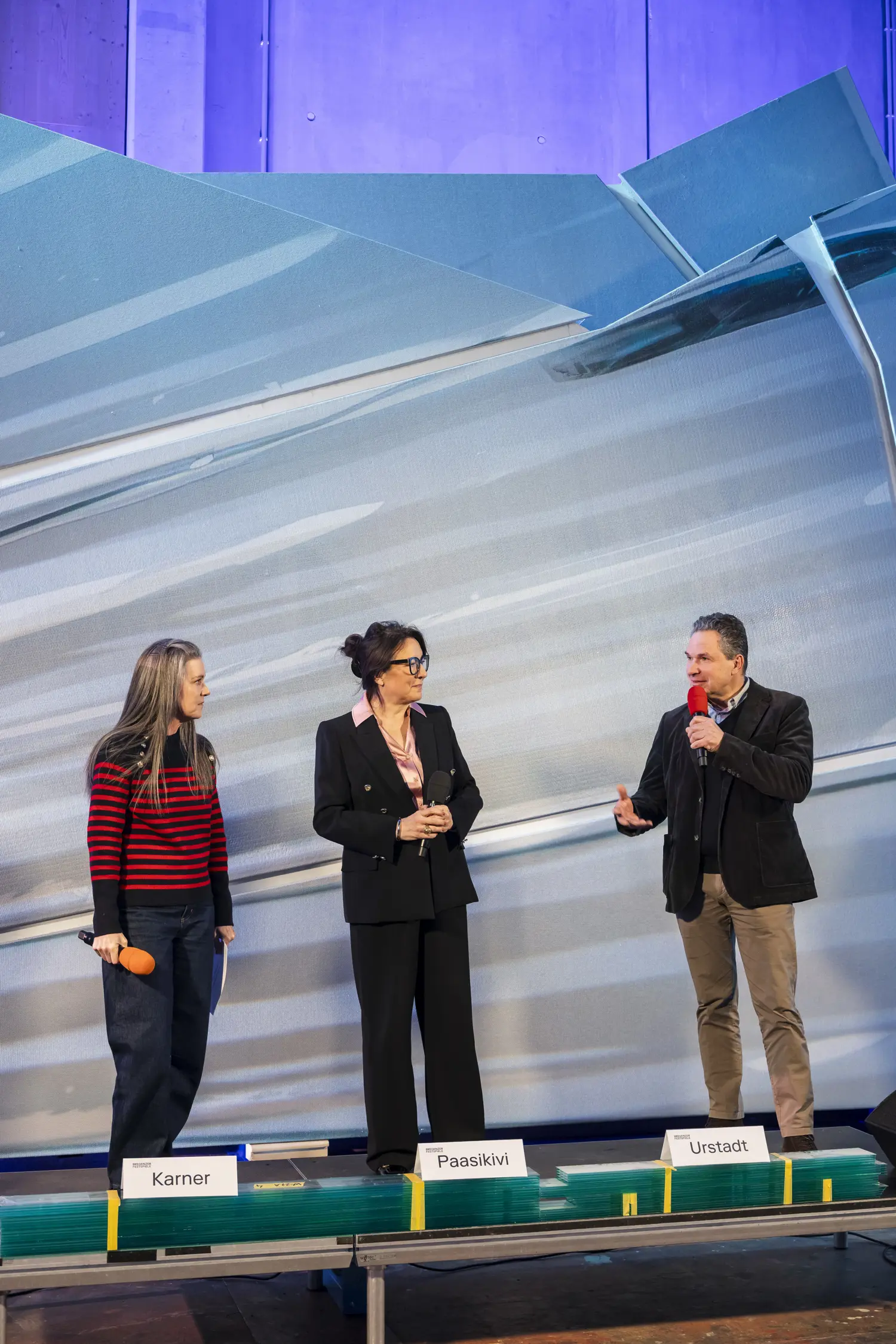 Aber die Spiegelwand ist kein echter Spiegel – ein solcher würde bei Lichteinfall das Publikum blenden –, sondern eine Illusion: das täuschend echte Abbild einer zerbrochenen Spiegeloberfläche. Ähnlich einem riesigen Puzzle werden die Techniker:innen der Bregenzer Festspiele die Wand in den kommenden Wochen aus 86 einzelnen Splittern zusammensetzen, deren Dimensionen von über zwölf Metern Länge bis hin zu nur knapp 40 Zentimetern reichen.