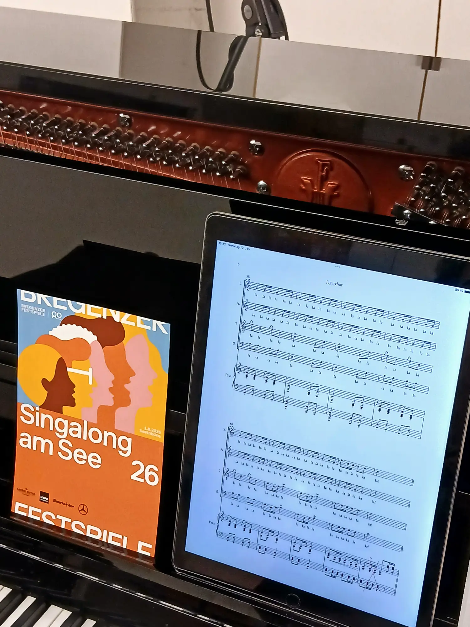 Unter dem Motto „Alemania cantat“ verwandelt sich die Seetribüne am 1. August 2026 in einen gigantischen Klangkörper. Um den Einstieg in den Singalong am See für alle Teilnehmer:innen so einfach und angenehm wie möglich zu gestalten, bieten die Festspiele auf ihrer Website jetzt ein umfassendes digitales Servicepaket an: Neben frei verfügbarem Notenmaterial unterstützen ab sofort auch spezielle Übungs-Audios dabei, die einzelnen Stimmen flexibel zu Hause oder in der Chorprobe kennenzulernen. Das Angebot richtet sich gleichermaßen an professionelle Ensembles wie an begeisterte Hobby-Sänger:innen.